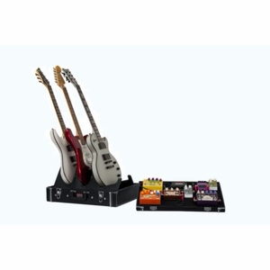 Gator Cases Gig-Box Jr. All-In-One Pedal Board and 3x Guitar Stand Combo in a Classic Wooden Case. 21.5" x 15" Pedal Board Surface - GW-GIGBOXJR