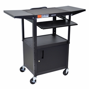 Luxor Black 42" Adjustable Height Table w/keyboard tray, cabinet & dropleaf shelf - AVJ42KBCDL