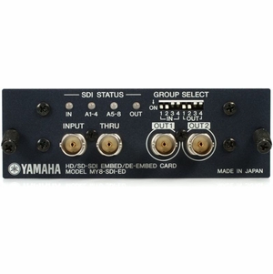 Yamaha 8-Channel HD/SD-SDI embed/de-embed input card; one BNC connector with SDI input; two BNC connectors with SDI output; and one BNC connector with SDI reclocked thru output, - yamaha-my8sdi-ed